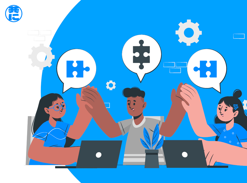Na língua japonesa, a palavra “tomoni" (共に) significa “junto" ou “com”. Utilizada para expressar a ideia de realizar algo em companhia ou em conjunto com outras pessoas. Ela representa a união e colaboração.