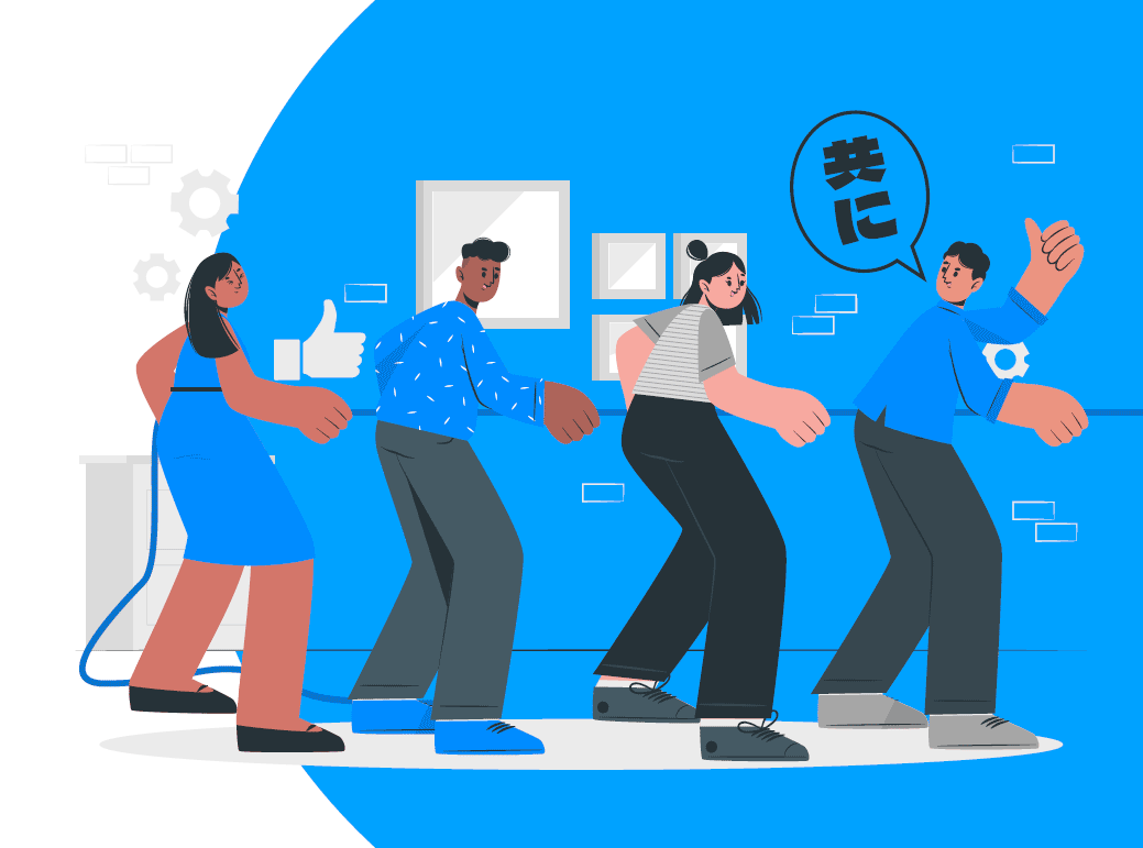 Na língua japonesa, a palavra “tomoni" (共に) significa “junto" ou “com”. Utilizada para expressar a ideia de realizar algo em companhia ou em conjunto com outras pessoas. Ela representa a união e colaboração.